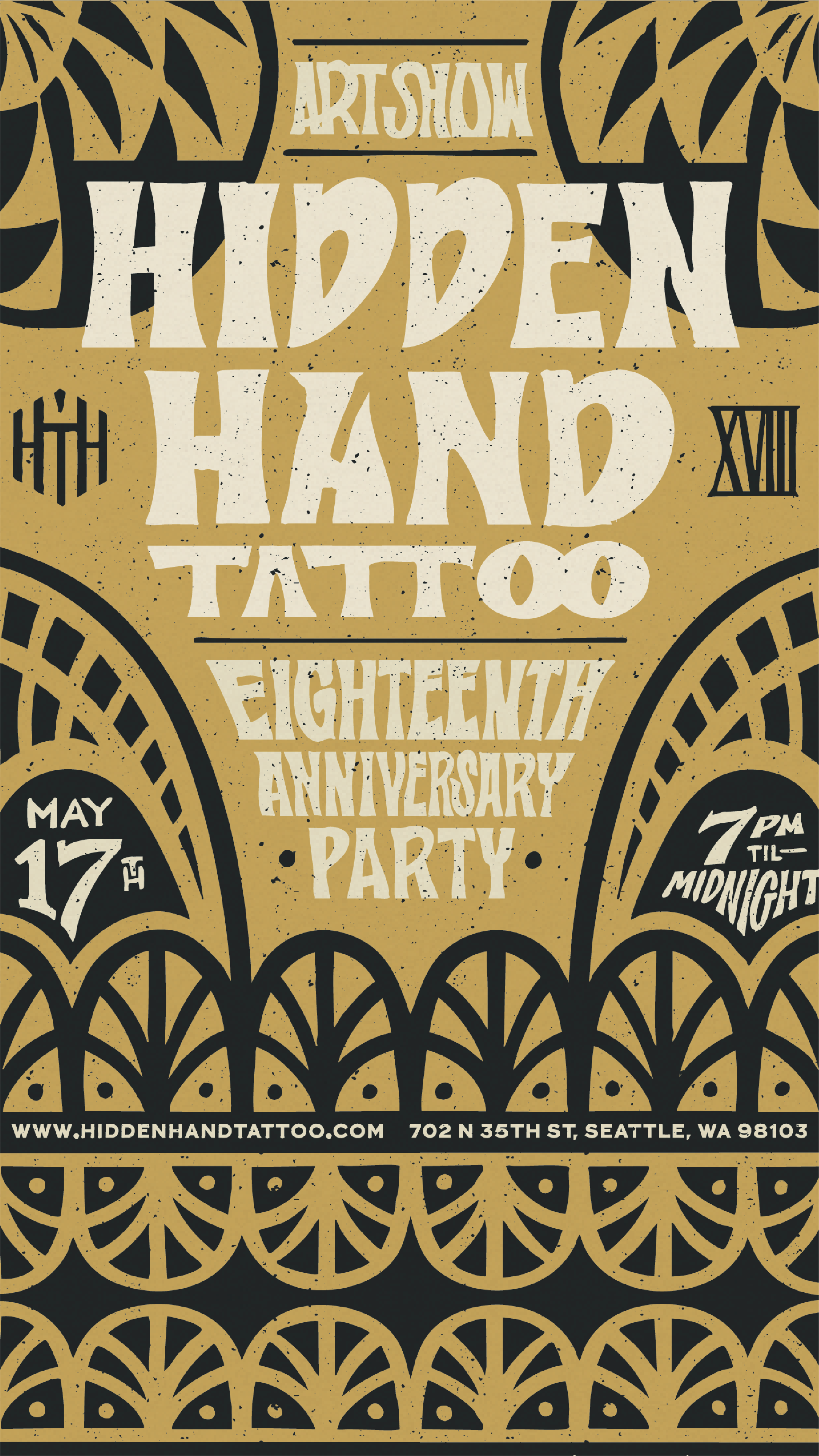 We are thrilled to invite EVERYONE to our 18th Anniversary Party! Saturday, May 17th, 2025 from 7pm to 12am. We will be displaying art of all mediums from all of our artists/tattooers, including those who guest spot throughout the year. We will also have drinks and food for a super rad time! Come meet all who work here and enjoy some amazing art that will be displayed around our shop. We welcome you to bring guests and have a great time. We are excited to show some never displayed art that some of us have been working on for hours and hours the last couple of months. Save the date, you won’t want to miss this!
